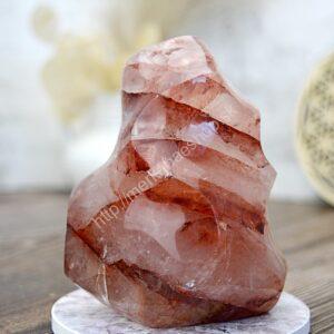 Krištáľ Tangerín (Krištáľ s Hematitom ) je veľmi silný minerál, ktorý vám dodá energiu a pozdvihne vášho ducha. Jeho prítomnosť vo vašom živote vás bude inšpirovať k práci v harmónii so všetkými a so všetkým naokolo. Vysoko účinný na uzemnenie, ako aj ochranu … dáva telo do rovnováhy, ako aj usporiadava myšlienky , zosilňuje energiu meridiánov, bráni negatívnym energiám vstupovať do aury. Tento kryštál vás naučí, ako napraviť nerovnováhu vo vašom živote a získate vyššie poznanie, že všetko nakoniec dobre dopadne. Prinesie radosť a šťastie do vášho každodenného života. Pomáha nám zbaviť sa starých vzorcov myšlienok a emócií, ktoré vytvárajú nespokojnosť, sklamanie alebo stagnáciu. Prebudí vaše zmysly a pomôže vám vykročiť k novým začiatkom. Odstráni akúkoľvek stopu pomalosti a nahradí vašu nízku a vyčerpanú hladinu energie. Bude tiež stimulovať vašu myseľ, takže budete môcť znížiť stres, problémy a zmätok.Symbolizuje svetlo na Zemi, jeho očistnú a liečivú energiu. Pôsobí ako katalyzátor, ktorý urýchľuje výmenu energií, pričom negatívne odoberá a pozitívne nabíja. Vyrovnáva, čistí a chráni auru, odstraňuje zábrany a blokády brzdiace voľný tok energie. Vnáša do duše jasno a čistotu.
