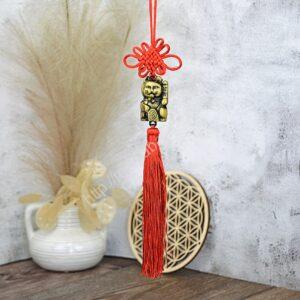 • Červený uzol a strapce: Červená farba aktivuje energiu „Yang“ a uzol nekonečna symbolizuje dlhovekosť a neutíchajúce šťastie.