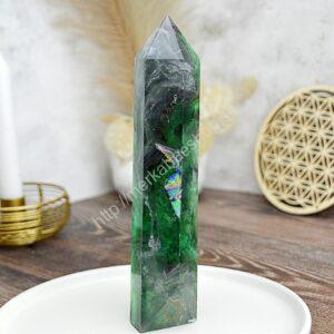 Fluorit – Kameň géniov, obdarený veľkou silou. Rozširuje naše vnemy. Vytvára energetický štít, ktorý nás chráni pred negatívnou energiou. Ochraňuje a zaceľuje našu Auru. Spúšťa proces čistenia organizmu. Pomáha nám rozpustiť naše nezdravé Ego, podporuje duševnú aktivitu a kľud a dodáva nám životný elán. Stimuluje našu myseľ a pomáha sa nám sústrediť, koncertovať a zlepšuje pamäť. Vyvažuje emócie a podporuje zdravé a šťastné vzťahy. Podporuje nás aby sme hľadali odpovede vo vnútri seba a nie navôkol. Poskytuje energetický štít ktorý nás chráni. Očista organizmu od jedov a nečistôt. Zmierňuje stres, tvrdohlavosť, reumu a astmu.