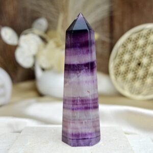 Fluorit – Kameň géniov, obdarený veľkou silou. Rozširuje naše vnemy. Vytvára energetický štít, ktorý nás chráni pred negatívnou energiou. Ochraňuje a zaceľuje našu Auru. Spúšťa proces čistenia organizmu. Pomáha nám rozpustiť naše nezdravé Ego, podporuje duševnú aktivitu a kľud a dodáva nám životný elán. Stimuluje našu myseľ a pomáha sa nám sústrediť, koncertovať a zlepšuje pamäť. Vyvažuje emócie a podporuje zdravé a šťastné vzťahy. Podporuje nás aby sme hľadali odpovede vo vnútri seba a nie navôkol. Poskytuje energetický štít ktorý nás chráni. Očista organizmu od jedov a nečistôt. Zmierňuje stres, tvrdohlavosť, reumu a astmu.