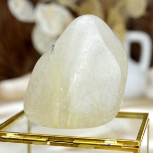 Rutilovaný quartz je veľmi číry horský krištáľ s jemnými zlatožltými ihličkami rutilu. Dokáže účinne integrovať energiu na všetkých úrovniach. Čistí auru, dodáva jej energiu.