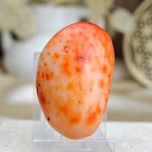 Karneol- Podporuje vitalitu, činorodú energiu, podporuje sústredenosť, obličky a močový mechúr. Poskytuje nám ochranu pred toxickou energiou. Podnecuje našu sexuálnu túžbu a plodnosť. Aktivuje hojnosť lásky, pozitívnej energie a svetla v našom živote. Pomáha nám dať do poriadku partnerské vzťahy. Pomáha nám od nečinnosti k tvoreniu, od nevedomia k vedomiu. Pomáha nám premeniť získané poznatky do praxe, teda v realitu. Podporuje zdravý imunitný systém a rozmnožovaciu sústavu. Upokojuje počas menštruácie a menopauzy.