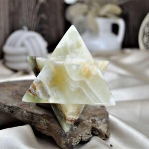 Zlatý Ónyx / Aragonit -Veľmi silný kameň, prinášajúci šťastie v láske, podporuje koncetráciu, duševnú očistu a rast, imunitný systém, regulácia srdca a nervového systému. Pomáha pri psychických problémoch, telesnej slabosti a nepokoji, pri problémoch žalúdka, čriev a kostí. Učí nás pokore, sebakontrole, istote a vytrvalosti. Rozpúšťa blokády všetkého druhu. Dostáva nás do stavu pokoja a súznenia s pravým Ja. Podporuje našu vôľu a podporuje nás v zmene.