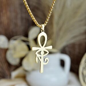 Náhrdelník ANKH+HÓROVO OKO z Chirurgickej/ nerezovej ocele strieborný