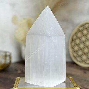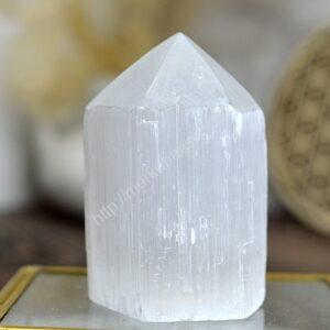 Selenit má veľmi jemné vibrácie a pomáha pri komunikácií s Anjelmi a pôsobí na rozvoj korunnej čakry, pre napojenie na Božstvo.