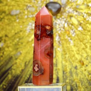 Krištáľ Tangerín (Krištáľ s Hematitom ) je veľmi silný minerál, ktorý vám dodá energiu a pozdvihne vášho ducha. Jeho prítomnosť vo vašom živote vás bude inšpirovať k práci v harmónii so všetkými a so všetkým naokolo. Vysoko účinný na uzemnenie, ako aj ochranu … dáva telo do rovnováhy, ako aj usporiadava myšlienky , zosilňuje energiu meridiánov, bráni negatívnym energiám vstupovať do aury. Tento kryštál vás naučí, ako napraviť nerovnováhu vo vašom živote a získate vyššie poznanie, že všetko nakoniec dobre dopadne. Prinesie radosť a šťastie do vášho každodenného života. Pomáha nám zbaviť sa starých vzorcov myšlienok a emócií, ktoré vytvárajú nespokojnosť, sklamanie alebo stagnáciu. Prebudí vaše zmysly a pomôže vám vykročiť k novým začiatkom. Odstráni akúkoľvek stopu pomalosti a nahradí vašu nízku a vyčerpanú hladinu energie. Bude tiež stimulovať vašu myseľ, takže budete môcť znížiť stres, problémy a zmätok.Symbolizuje svetlo na Zemi, jeho očistnú a liečivú energiu. Pôsobí ako katalyzátor, ktorý urýchľuje výmenu energií, pričom negatívne odoberá a pozitívne nabíja. Vyrovnáva, čistí a chráni auru, odstraňuje zábrany a blokády brzdiace voľný tok energie. Vnáša do duše jasno a čistotu.