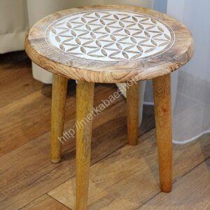 Kompaktný príručný stolík vyrobený z masívneho mangovníkového dreva so Stromom života na vrchu. Ideálne ako dekoratívny akcent, alebo vyvýšená plošina pre duchovné predmety, kryštály, kvetiny .