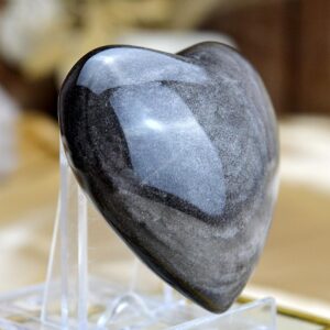 Strieborný obsidián zlepšuje meditáciu a účinkuje ako vynikajúca pomôcka pri pozorovaní udalostí z nadhľadu. Je silným kameňom manifestácie v našom živote. Predstavuje zrkadlo odrážajúce vnútorné bytie. Do života vnáša trpezlivosť a vytrvalosť. Jedná sa o kameň, ktorý pomáha pri cestách mimo telo, pretože spája astrálne telo s fyzickým, čím zaisťuje návrat duše späť do jej súčasnej telesnej inkarnácie. Pomáha nám radikálnej očiste, obnovuje prietok energie medzi čakrami. Odstraňuje blokády v podvedomí a traumy. Aktivuje naše skryté fyzické rezervy a psychické schopnosti. Uvoľňuje svalové napätie. Ochraňuje nás pred čiernou mágiou a nepriaznivými vplyvmi z duchovného sveta.