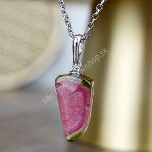 Strieborný Prívesok MELÓNOVÝ TURMALÍN #4 – Vnútorná rovnováha, Liečenie srdca, Radosť, Ochrana aury